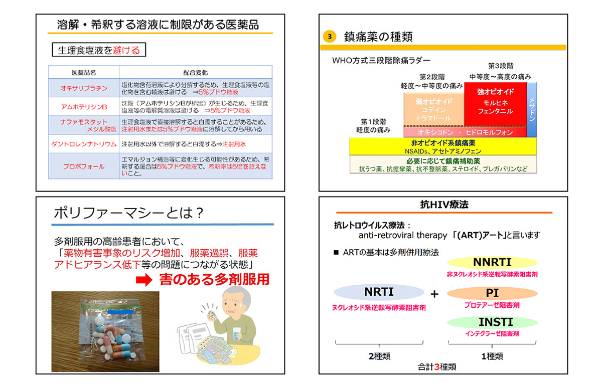 - 薬に強い看護師になるために、(模擬)処方せんを用いた処方解析や薬剤関連の医療事故事例の検討の中で、そのために必要な医薬品の専門知識やリスクマネジメントについて理解・修得することを目指します。